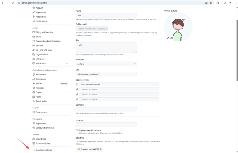 在 github 个人设置里面,找到最下面的 Developer Settings ,点击进入