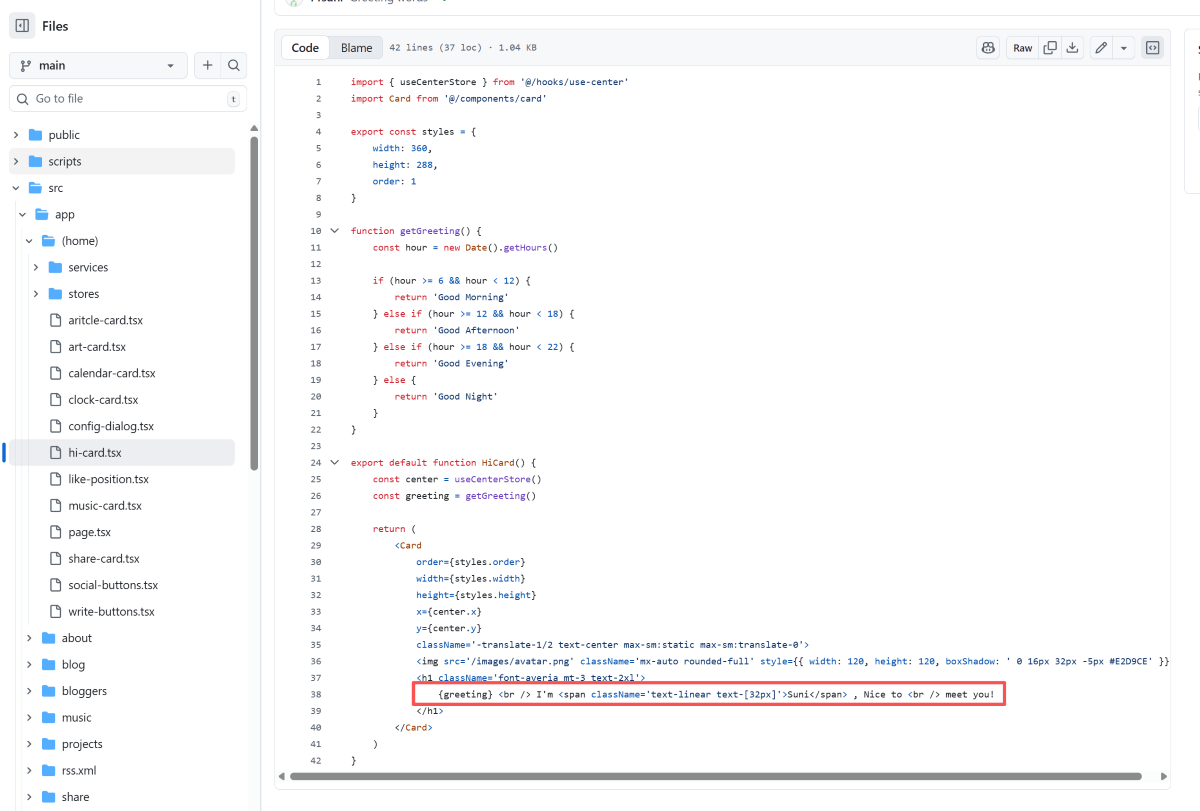 比如中间的内容,为 HiCard,点击 hi-card.tsx 文件,即可更改其内容。