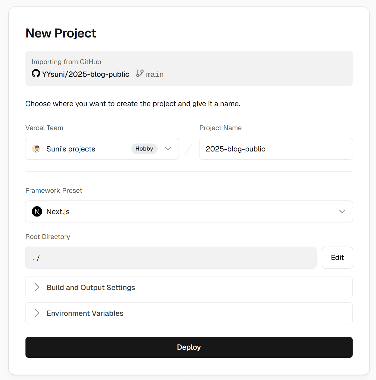 我这里熟悉 Vercel 部署,就以 Vercel 部署为例子。创建 Project => Import 这个项目