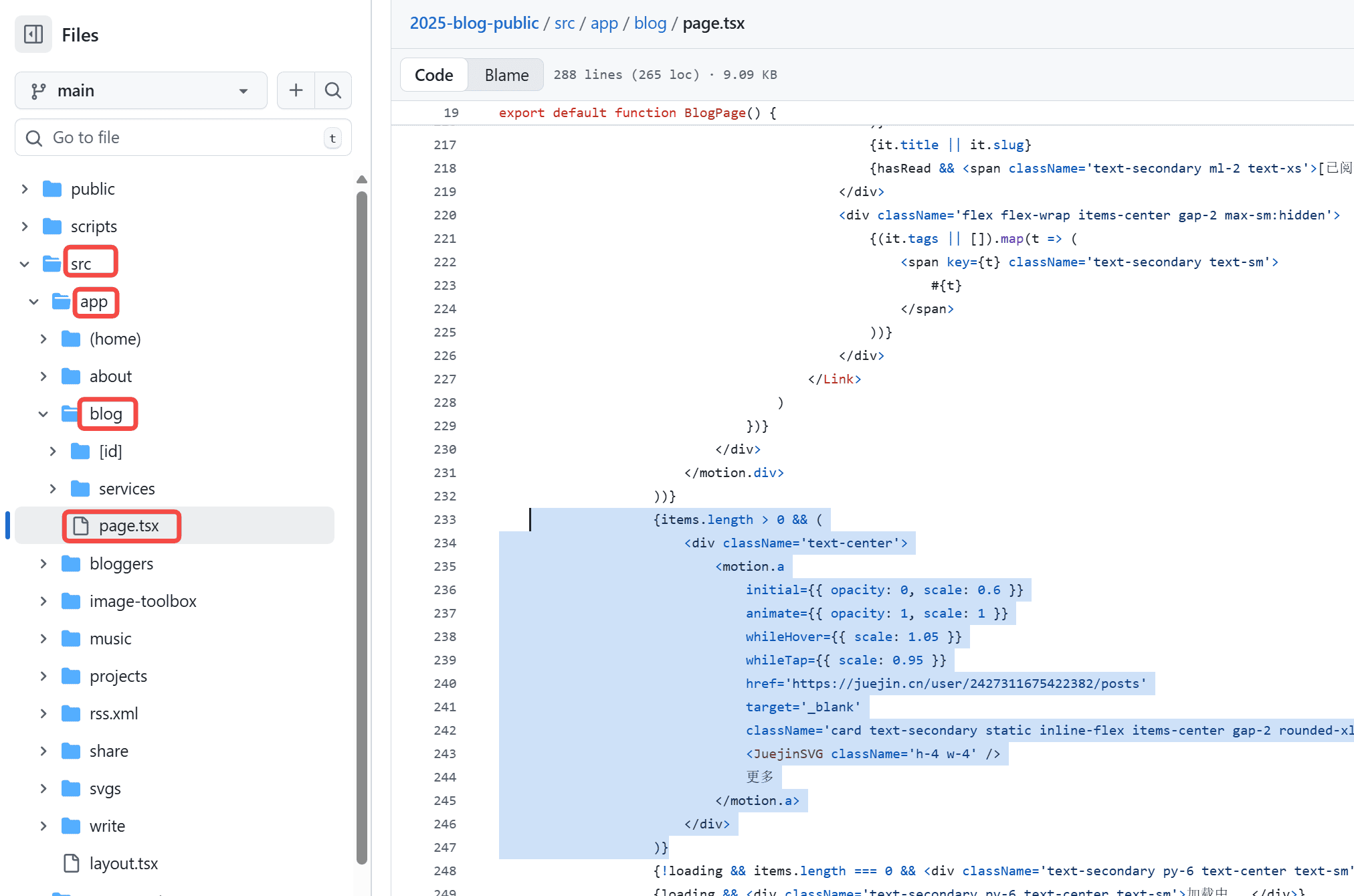src/app/blog/page.tsx 文件,下图位置,删除这部分代码。