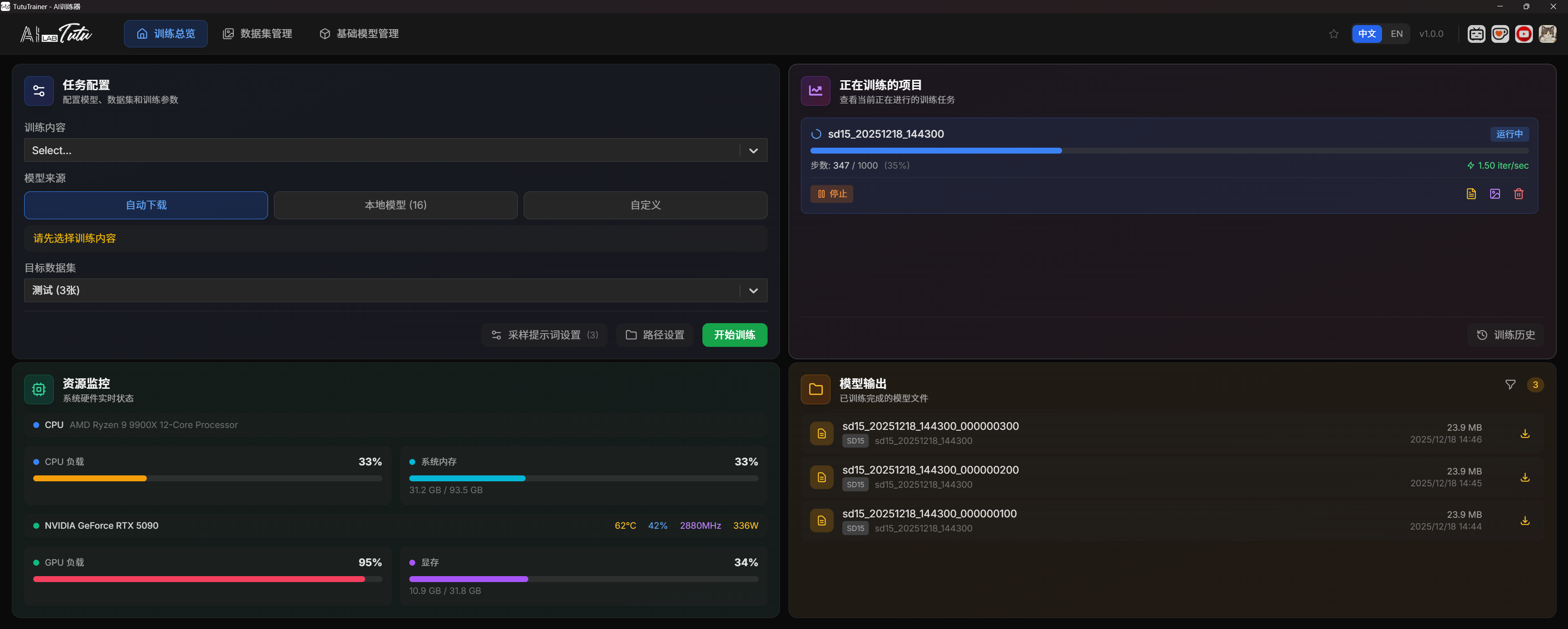 datasets/新建文件夹 - TutuTrainer → 选择 Z-IMG